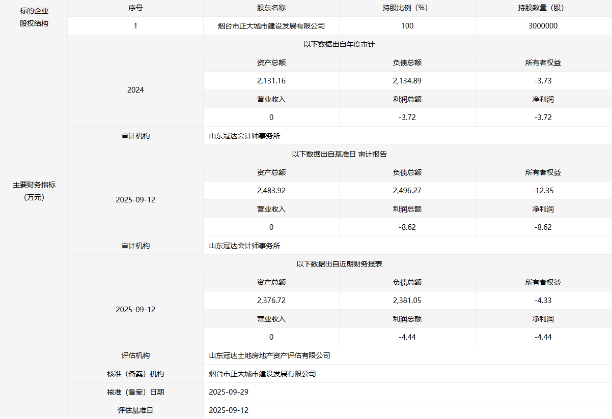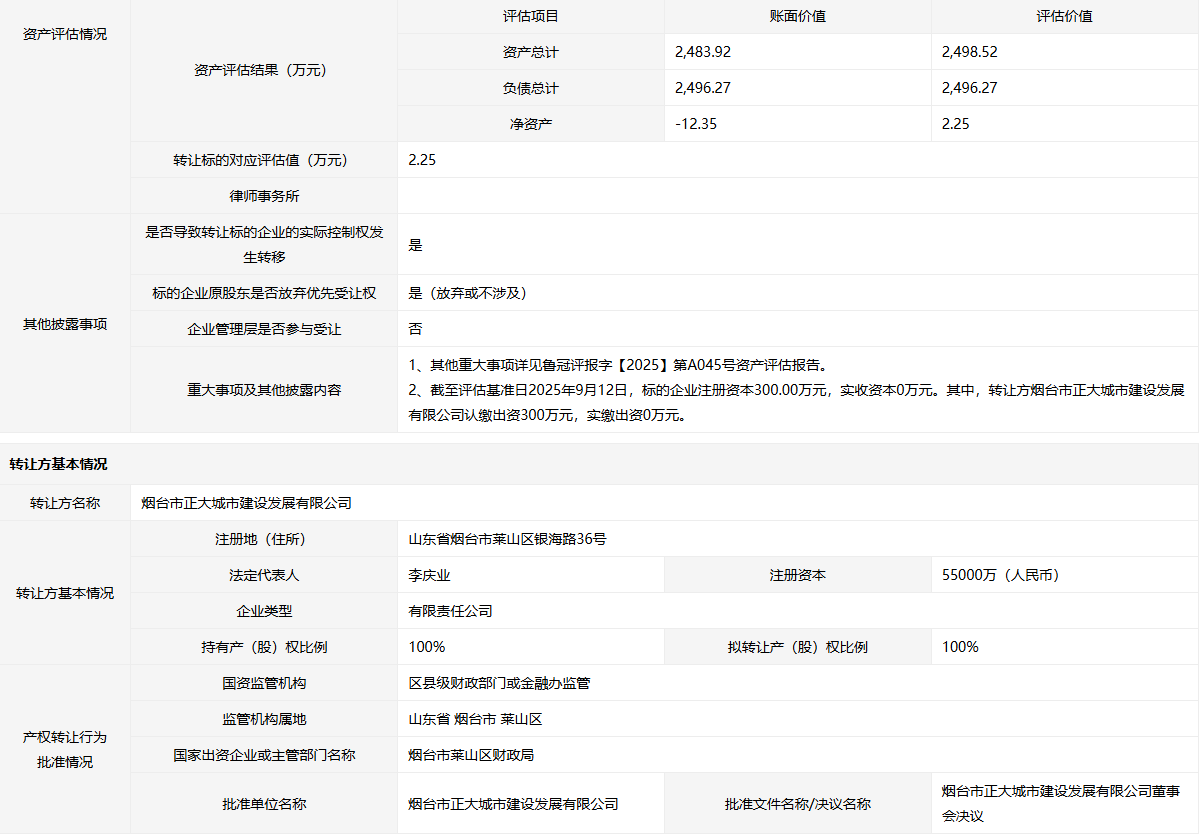 轉讓方:煙臺市正大城市建設發(fā)展有限公司