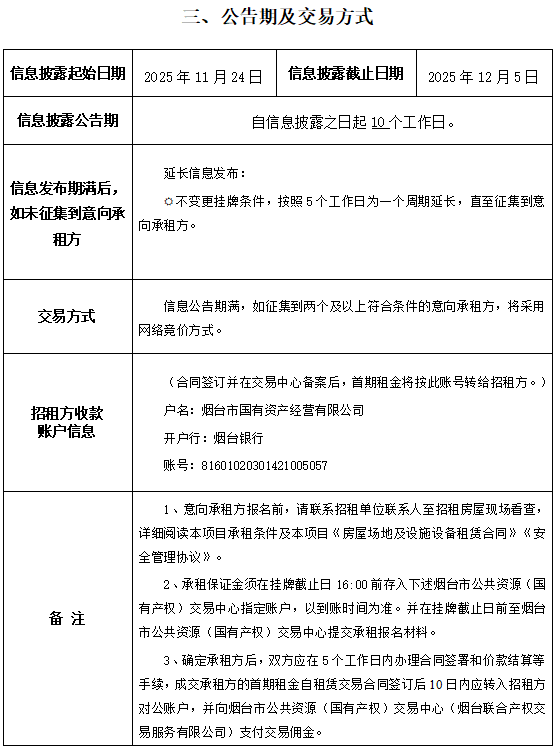 掛牌起止日期:2025年11月24日至2026年1月7日